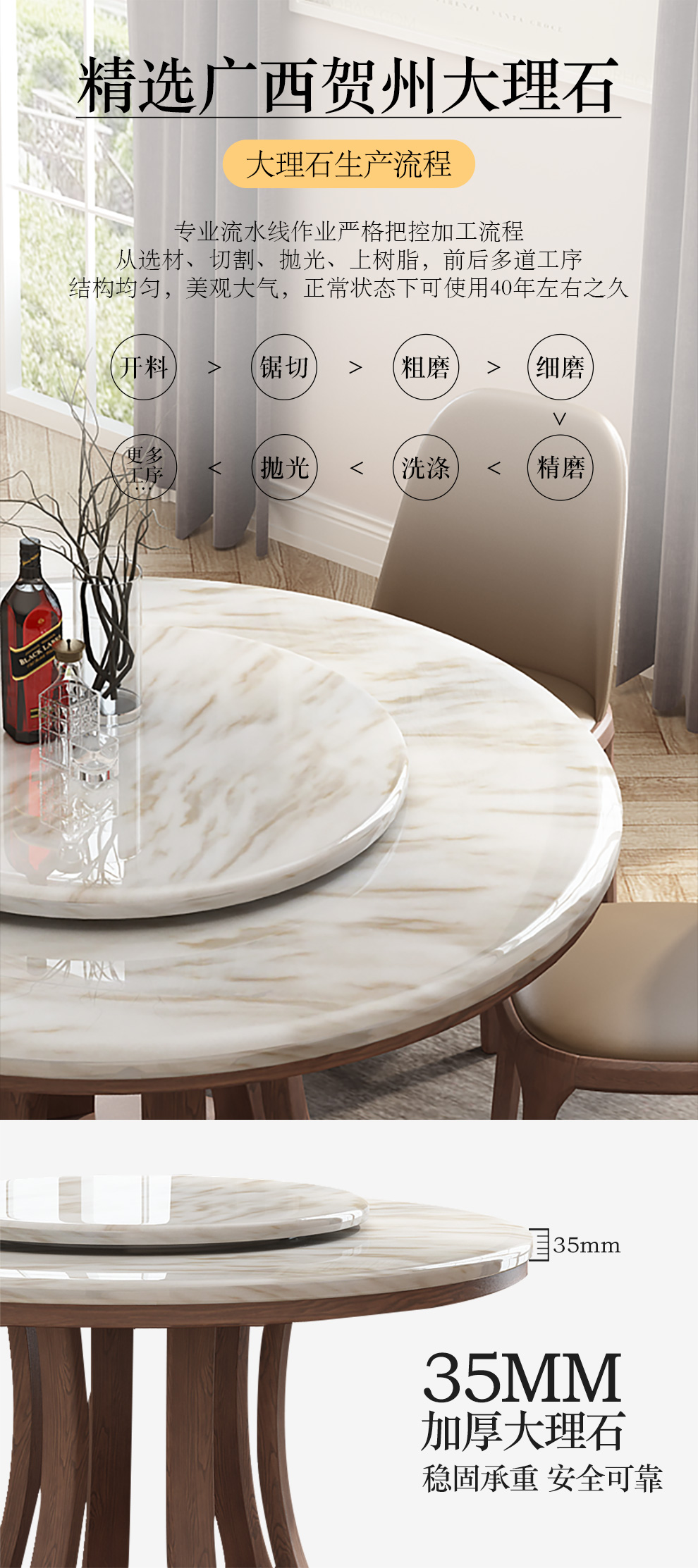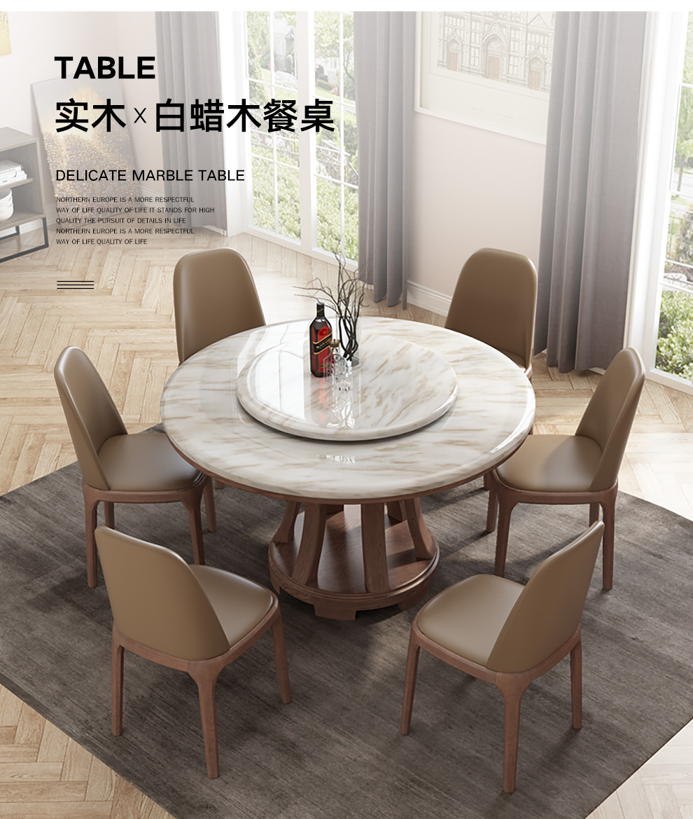 采薇大理石テーブルセット北欧丸太テーブル現代簡単食事テーブル1.2 mシングルテーブル(回転盤付き)【写真価格ブランド見積】