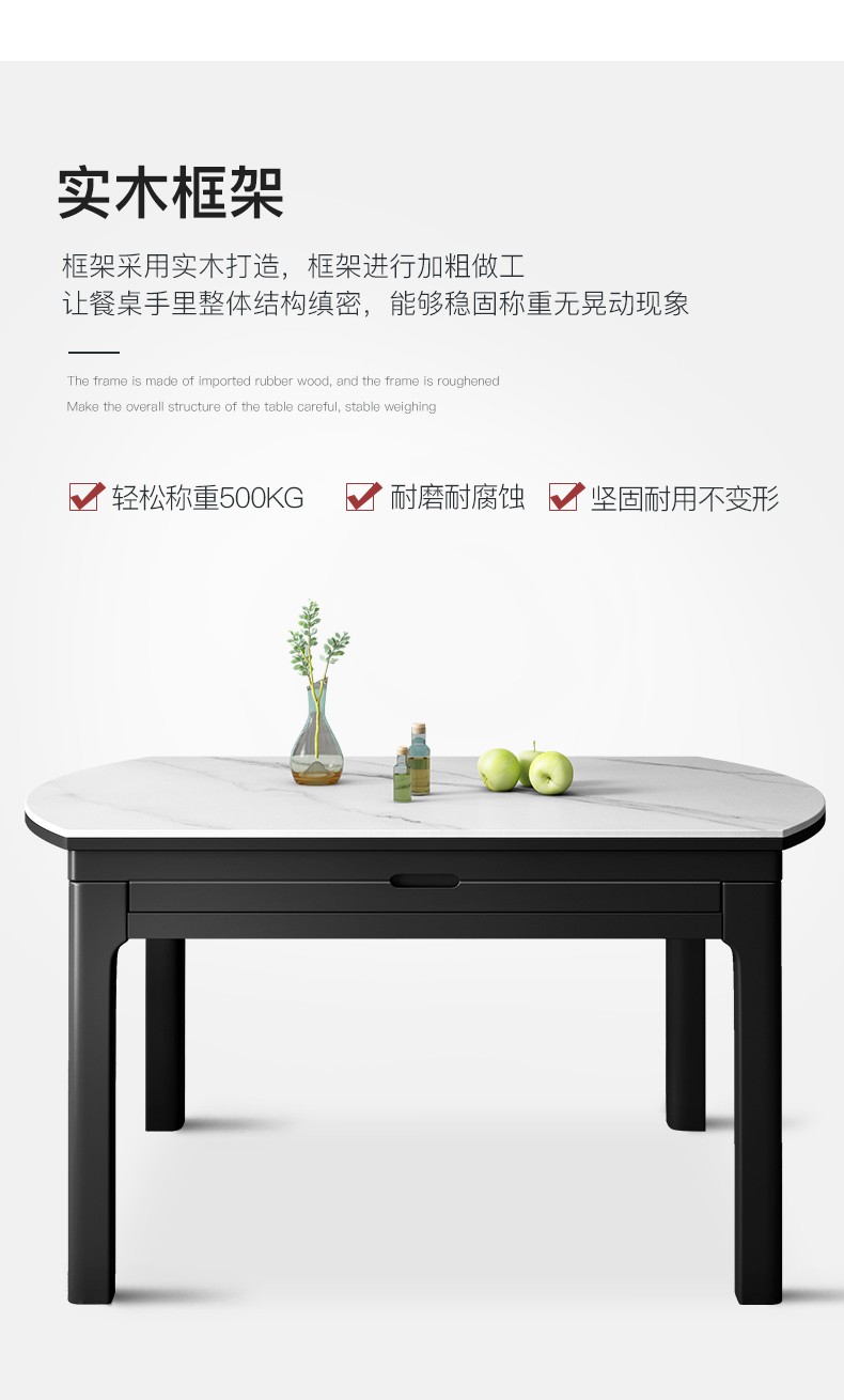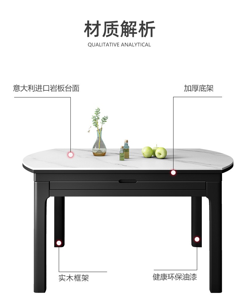 四季の木屋北欧岩板の食事のテーブルと椅子を組み合わせて家庭用の折り畳みテーブルの小戸型の現代簡単な丸太両用伸縮テーブル1.35 mシングルテーブル+6椅子(炉付き)の岩板面