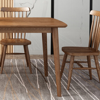 ロム韻典蔵の食卓北欧の全実木の食事テーブルと椅子の組み合わせ白ワックスの木を簡単に食事をするテーブルの長方形の家庭用6人の小型住宅型1.4メートル+4椅子(ウィンザーチェア)
