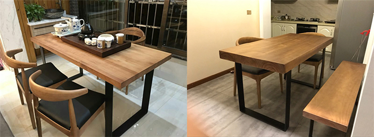 森丸太方北欧実木食卓家庭用小戸型食事テーブル現代シンプルレストランミルクティー店コーヒーショップテーブルセット:160*70*75面厚5 cm+6椅子【写真価格ブランド見積】