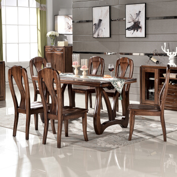 黒胡桃の木の実木のテーブルと椅子の組み合わせは現代で簡単で北欧の大きさの家庭用長方形の食卓の家具【黒胡桃の木1.38メートル】一つのテーブルの六椅子【図の価格のブランドのオファー】―