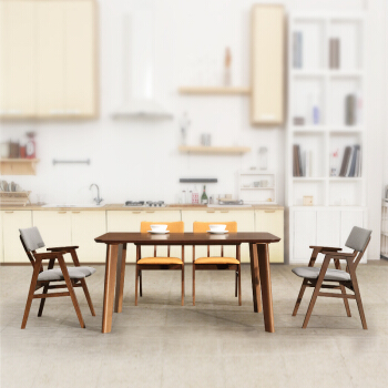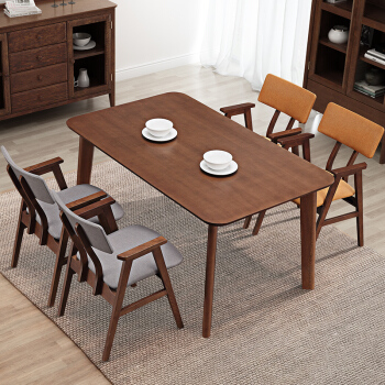 沃買輸入丸太テーブル現代家具北欧小戸型テーブル付き長方形テーブルセット原木色テーブル【ドイツブナ全実木】