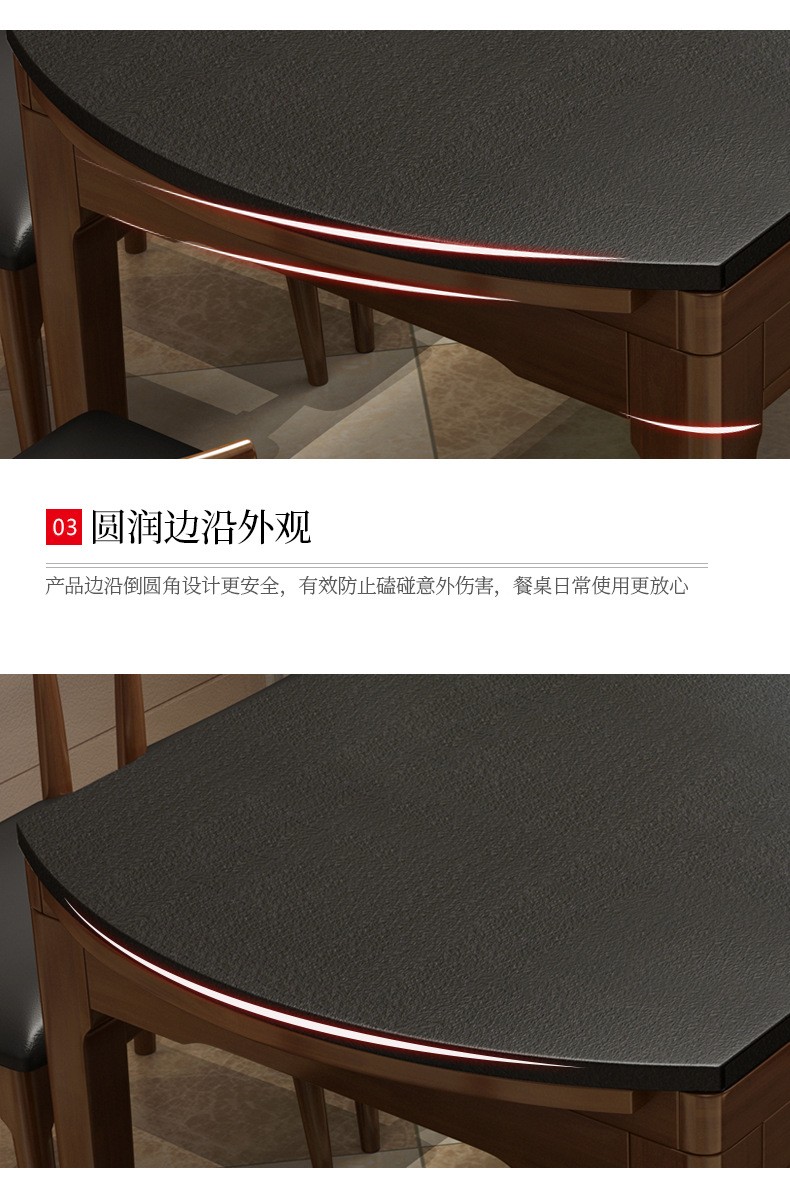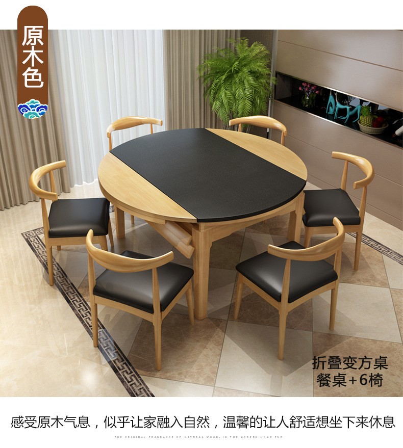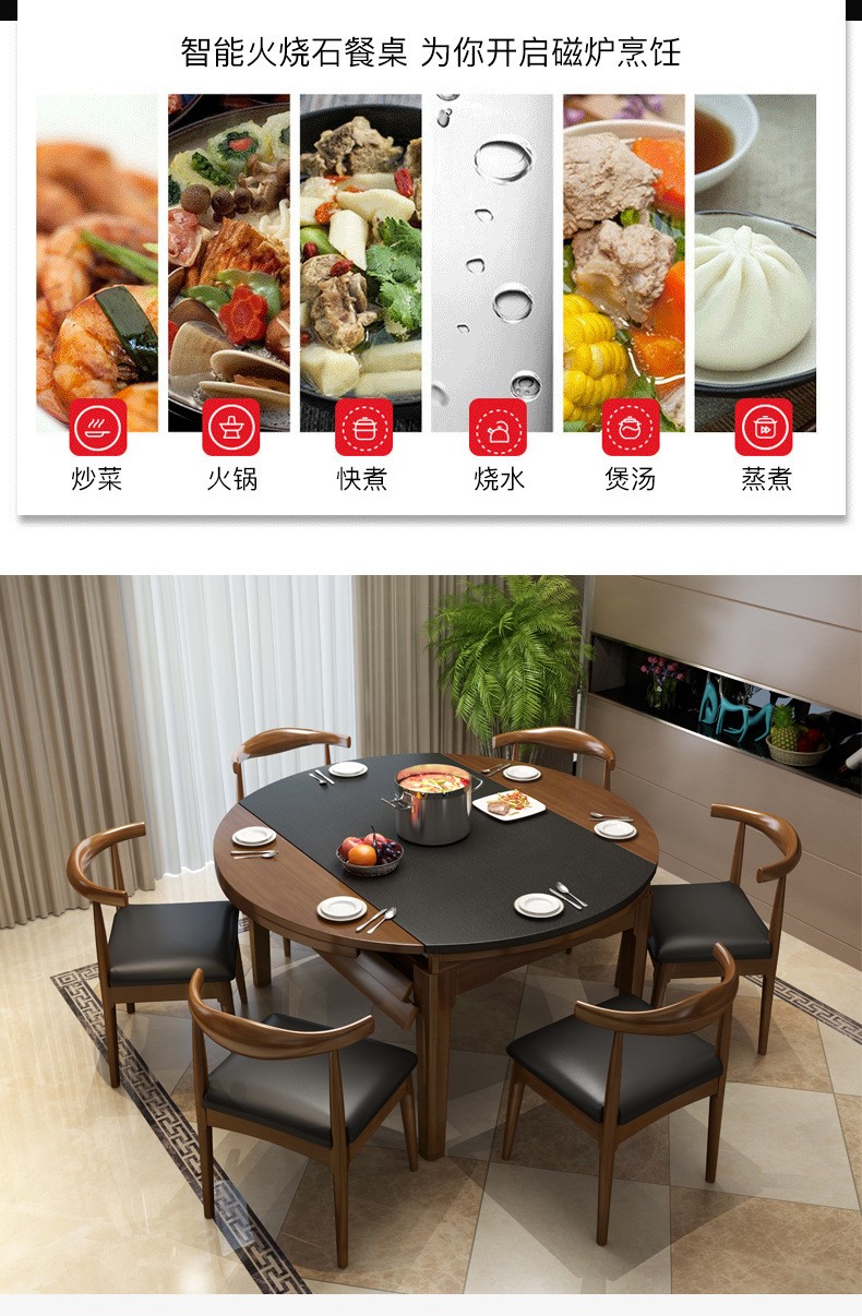 昂象食卓北欧焼石実木跳台折りたたみテーブルとテーブルの組み合わせ6人のテーブル4人分のテーブル4人分の小さなテーブルの家庭用長テーブルレストランの小さな木製大理石のテーブル胡桃色(焼石)電磁炉付きテーブル8椅子(1.5メートル)