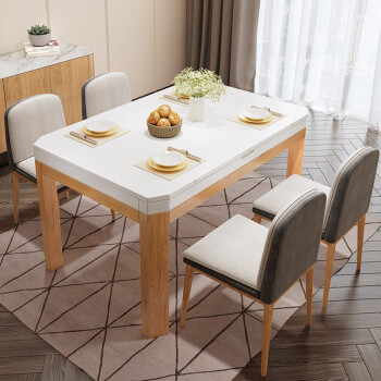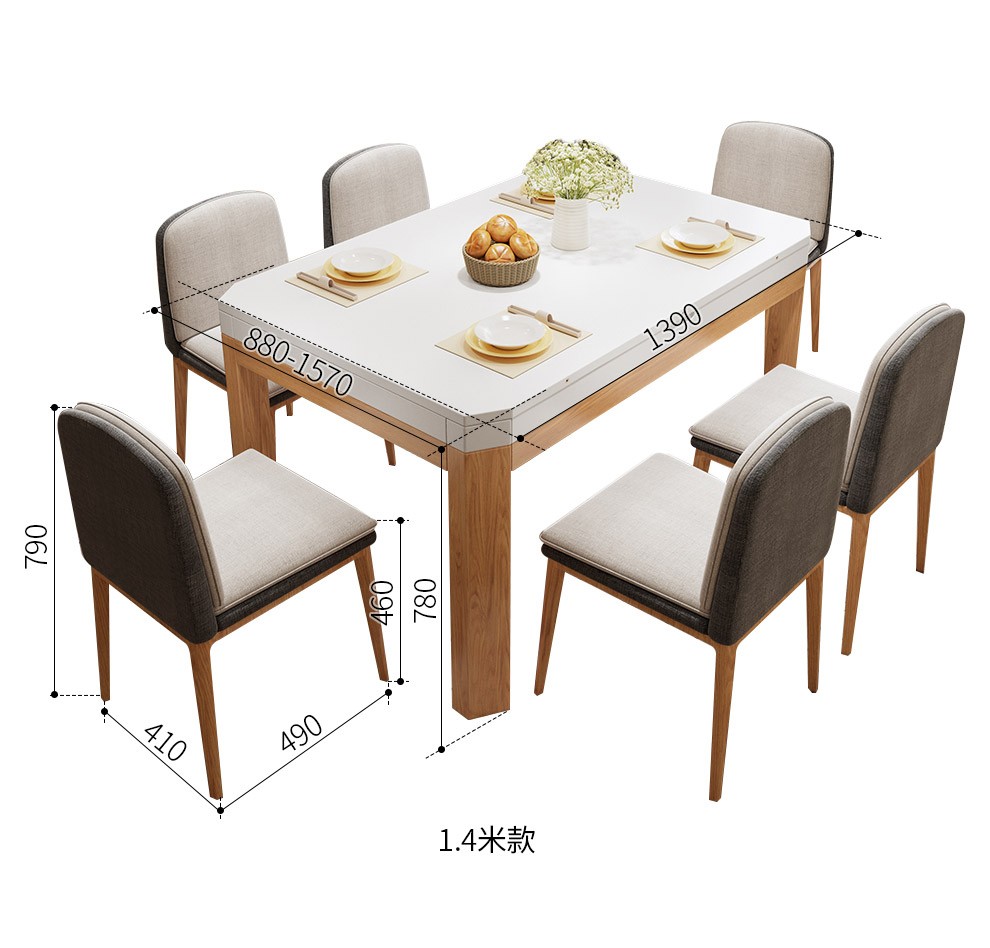 【同価格618日】栖梓テーブルの実木テーブルと椅子の組み合わせ家庭の大小戸型北欧現代簡約4-6人のリビングルームの食事テーブル1.2メートルの実木脚テーブル+4椅子【写真価格ブランド見積】-
