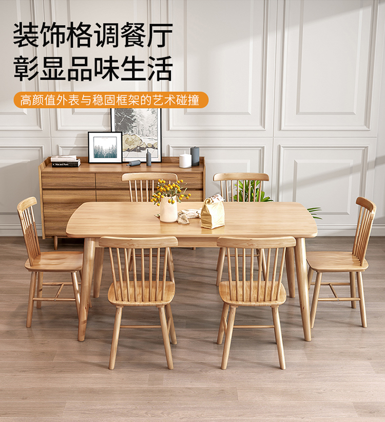 宝义家具北欧全実木食卓家庭用小戸型食卓椅子组4人6人原木色长方形食事桌子120*70単桌(全実木)【图片价格ブランド报价】-