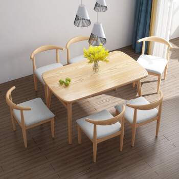 テーブルチェアテーブル4テーブルファーストフードテーブルチェアテーブルチェアテーブルチェアテーブルチェアテーブルチェアテーブルチェアテーブルチェアアパート賃貸住宅北欧シンプル80*140テーブル+6本牛角椅子(原木色)