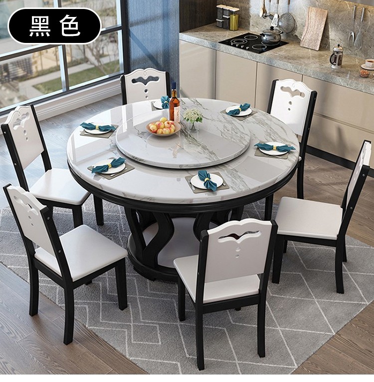 碧芯 餐桌 轻奢大理石餐桌北欧圆桌带转盘饭桌圆形旋转实木家用电磁炉餐桌椅组合 1.3一桌8椅(胡桃色带转盘)