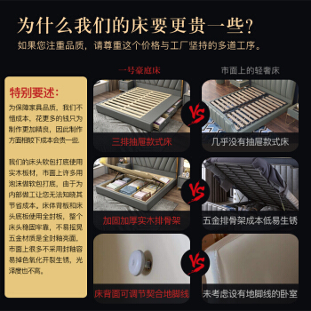豪庭ベッド1号1.8メートル1.5 mベッドダブルベッド軟包高箱結婚式ベッドの後、近代的な軽奢なベッドルームの逸品家具8835腣皮芸床+1箱+23 cm快適なラテックスベッド【引き出し高箱タイプ】1.8*2 m
