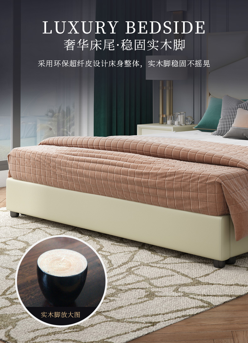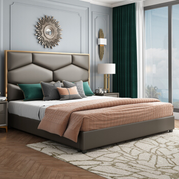 豪庭ベッド1号1.8メートル1.5 mベッドダブルベッド軟包高箱結婚式ベッドの後、近代的な軽奢なベッドルームの逸品家具8836〹皮芸ベッド+1箱+23 CM山茶マット【引き出し高箱タイプ】1.8*2.0 m