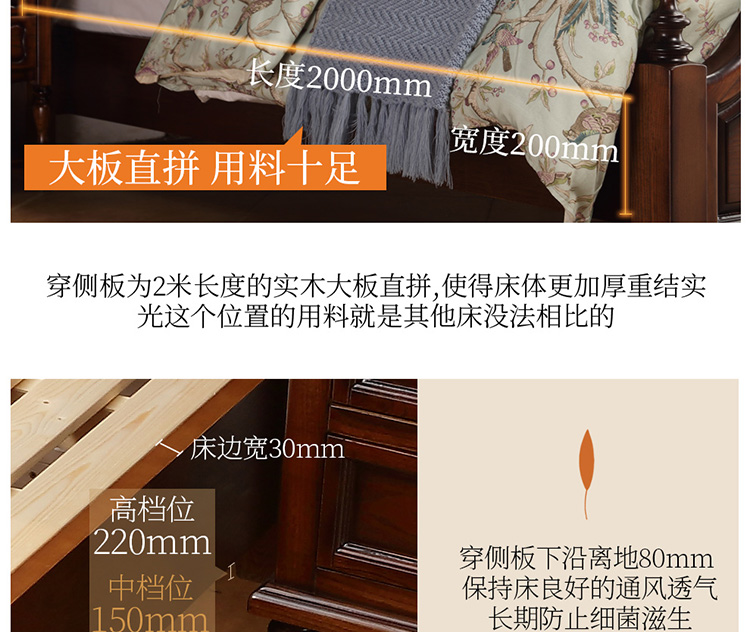 豪庭ベッド1号の実木ベッドアメリカ式1.5 m 1.8 mベッドの柔らかい皮の背もたれのツインベッドの皮のベッドの高箱の保管物の寝室の逸品の家具M 6912〓【白蝋木】高箱のベッド1.8*2.0 m