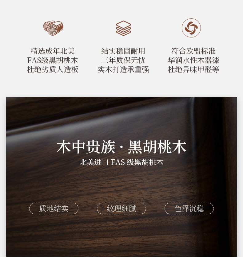 豪庭ベッド1号実木ベッド北アメリカ黒胡桃木床1.8 m 1.5 mシングルダブルベッド高箱物置ベッドベッドルーム逸品家具8 A 08芫実木床+23 cm独立袋スプリングベッド1.8*2.0 m