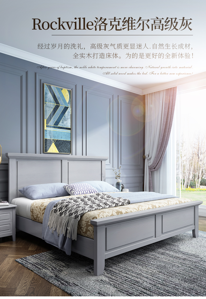 豪庭ベッド1号の実木ベッドアメリカ式ベッド1.8メートルのシングルダブルベッド灰色のミニベッドの高箱詰めの物置結婚ベッドは簡単にベッドルームの逸品家具213-H咻(標準モデル)のベッド+16隺のベッドのヘッドカバー*1+23 cmの山間マット1.8*2.0 mの高級灰